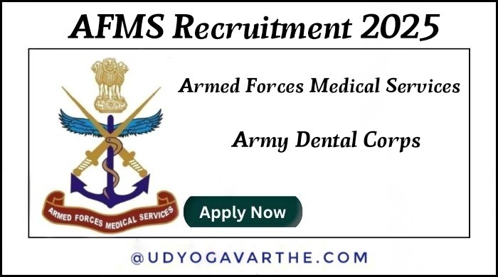 AFMS ಇಂದ 30 ಆರ್ಮಿ ಡೆಂಟಲ್ ಕಾರ್ಪ್ಸ್ ಹುದ್ದೆಯನ್ನು ಭರ್ತಿ ಮಾಡಲು ಇದೀಗ ಅಧಿಸೂಚನೆಯನ್ನು ತನ್ನ ಅಧಿಕೃತ ವೆಬ್‌ಸೈಟ್ ನಲ್ಲಿ ಬಿಡುಗಡೆ ಮಾಡಲಾಗಿದೆ. ಗೌರ್ಮೆಂಟ್ ಉದ್ಯೋಗಕ್ಕಾಗಿ ಹುಡುಕಾಡುತ್ತಿರುವ ಎಲ್ಲಾ ಉದ್ಯೋಗಾಂಕ್ಷಿಗಳಿಗೆ ಇದು ಒಂದು ಸಿಹಿ ಸುದ್ದಿಯಾಗಿದೆ. ಸಶಸ್ತ್ರ ಪಡೆಗಳ ವೈದ್ಯಕೀಯ ಸೇವೆ ಅಧಿಸೂಚನೆಗಾಗಿ ಕಾಯುತ್ತಿದ್ದ ಅಭ್ಯರ್ಥಿಗಳು ಈಗಲೇ ಆನ್ಲೈನ್ ಮೂಲಕ ಅರ್ಜಿಯನ್ನು ಸಲ್ಲಿಸಬಹುದು, ಆನ್ಲೈನ್ ಮೂಲಕ ಅರ್ಜಿ ಸಲ್ಲಿಸಲು ಕೊನೆಯ ದಿನಾಂಕ 17 ಸೆಪ್ಟೆಂಬರ್ 2025.