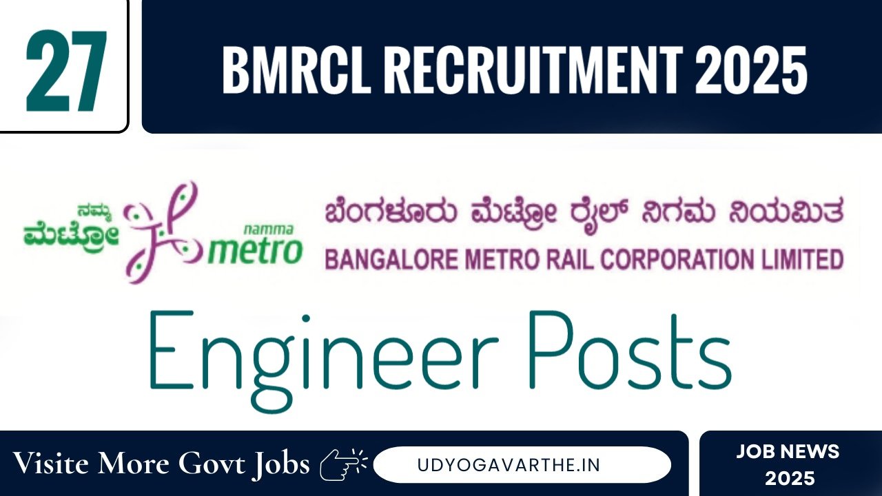 BMRCL Recruitment 2025: Bangalore Metro Rail Corporation Limited has released a notification on its official website to fill 27 Engineer posts. Those who are interested in joining BMRCL and are looking for a government job can apply online / Offline before end date. Read more information about these posts and download the notification through the link given below.