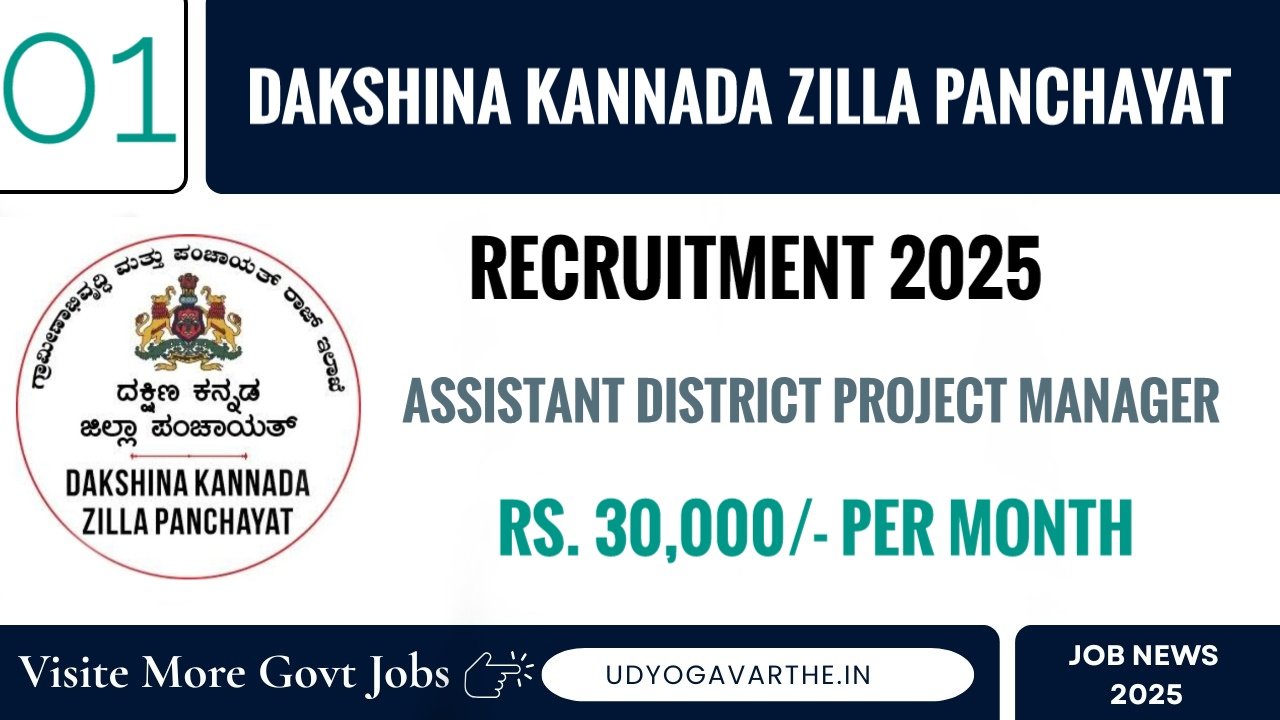 Dakshina Kannada Zilla Panchayat : Dakshina Kannada Zilla Panchayat has released a notification on its official website to fill 01 Assistant District Project Manager post. Those who are interested in joining Dakshina Kannada Zilla Panchayat and are looking for a government job can apply offline before 20 December 2025. Read more information about these posts and download the notification through the link given below.