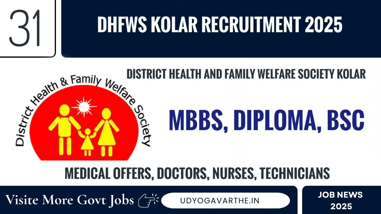 DHFWS Kolar Recruitment 2025: Official website has released a notification to fill 31 Medical posts. Those who are interested in joining DHFWS and those who are looking for a government job in Kolar can apply Offline before 16 December 2025. Read more information about these posts and download the notification through the link given below.
