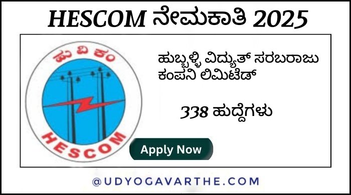 HESCOM ಇಂದ 338 ಅಪ್ರೆಂಟಿಸ್ ತರಬೇತಿ ಹುದ್ದೆಯನ್ನು ಭರ್ತಿ ಮಾಡಲು ಇದೀಗ ಅಧಿಸೂಚನೆಯನ್ನು ತನ್ನ ಅಧಿಕೃತ ವೆಬ್ಸೈಟ್ ನಲ್ಲಿ ಬಿಡುಗಡೆ ಮಾಡಲಾಗಿದೆ. ಗೌರ್ಮೆಂಟ್ ಉದ್ಯೋಗಕ್ಕಾಗಿ ಹುಡುಕಾಡುತ್ತಿರುವ ಎಲ್ಲಾ ಉದ್ಯೋಗಾಂಕ್ಷಿಗಳಿಗೆ ಇದು ಒಂದು ಸಿಹಿ ಸುದ್ದಿಯಾಗಿದೆ. ಹುಬ್ಬಳ್ಳಿ ವಿದ್ಯುತ್ ಸರಬರಾಜು ಕಂಪನಿ ಲಿಮಿಟೆಡ್ ಅಧಿಸೂಚನೆಗಾಗಿ ಕಾಯುತ್ತಿದ್ದ ಅಭ್ಯರ್ಥಿಗಳು ಈಗಲೇ ಆನ್ಲೈನ್ ಮೂಲಕ ಅರ್ಜಿಯನ್ನು ಸಲ್ಲಿಸಬಹುದು, ಆನ್ಲೈನ್ ಮೂಲಕ ಅರ್ಜಿ ಸಲ್ಲಿಸಲು ಕೊನೆಯ ದಿನಾಂಕ 18 ಸೆಪ್ಟೆಂಬರ್ 2025.