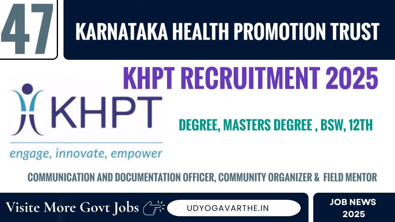 KHPT Recruitment 2025: Karnataka Health Promotion Trust has released a notification on its official website to fill 47 Community Organizer, Field Mentor posts. Those who are interested in joining KHPT and are looking for a government job can apply online before 22 December 2025. Read more information about these posts and download the notification through the link given below.