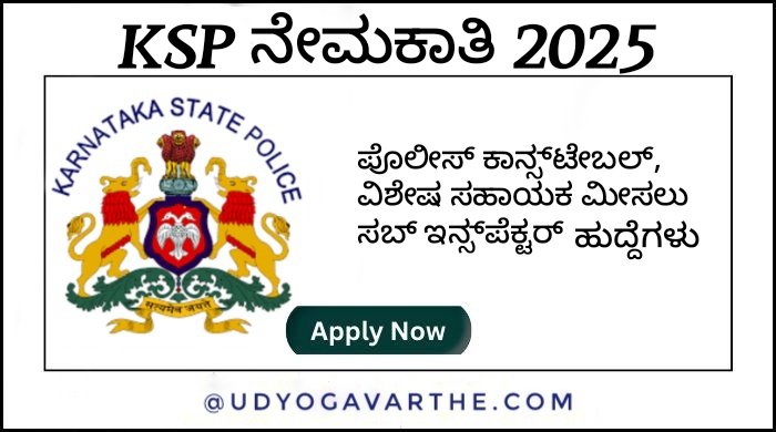 KSP ಇಂದ 15941 ಪೊಲೀಸ್ ಕಾನ್ಸ್ಟೇಬಲ್, ವಿಶೇಷ ಸಹಾಯಕ ಮೀಸಲು ಸಬ್ ಇನ್ಸ್ಪೆಕ್ಟರ್ ಹುದ್ದೆಯನ್ನು ಭರ್ತಿ ಮಾಡಲು ಇದೀಗ ಅಧಿಸೂಚನೆಯನ್ನು ತನ್ನ ಅಧಿಕೃತ ವೆಬ್ಸೈಟ್ ನಲ್ಲಿ ಬಿಡುಗಡೆ ಮಾಡಲಾಗಿದೆ. ಗೌರ್ಮೆಂಟ್ ಉದ್ಯೋಗಕ್ಕಾಗಿ ಹುಡುಕಾಡುತ್ತಿರುವ ಎಲ್ಲಾ ಉದ್ಯೋಗಾಂಕ್ಷಿಗಳಿಗೆ ಇದು ಒಂದು ಸಿಹಿ ಸುದ್ದಿಯಾಗಿದೆ. ಕರ್ನಾಟಕ ರಾಜ್ಯ ಪೊಲೀಸ್ ಅಧಿಸೂಚನೆಗಾಗಿ ಕಾಯುತ್ತಿದ್ದ ಅಭ್ಯರ್ಥಿಗಳು ಮುಂಬರುವ ದಿನಗಳಲ್ಲಿ ಆನ್ಲೈನ್ ಮೂಲಕ ಅರ್ಜಿ ಸಲ್ಲಿಸಬಹುದು.