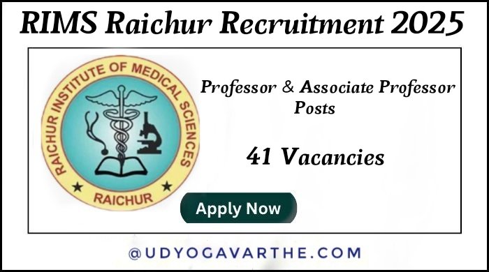 RIMS Raichur Recruitment 2025 : Raichur Institute of Medical Sciences has released a notification on its official website to fill Professor, Associate Professor posts. Those who are looking for a government job at Raichur can apply offline before October 27, 2025. If you want more information about these posts, read this completely and download the notification through the link given below.