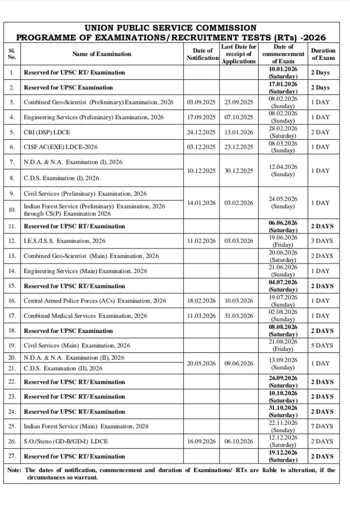 UPSC Exam Calendar 2026: The provisional exam calendar for the year 2026 has been released on the UPSC official website. Many freshers and repeaters candidates are preparing for the UPSC 2026. To encourage the candidates, the UPSC official website has released the provisional recruitment calendar for the year 2026. Through this calendar, information can be obtained about when the recruitment form will be released, its last date and when the exam will be held.