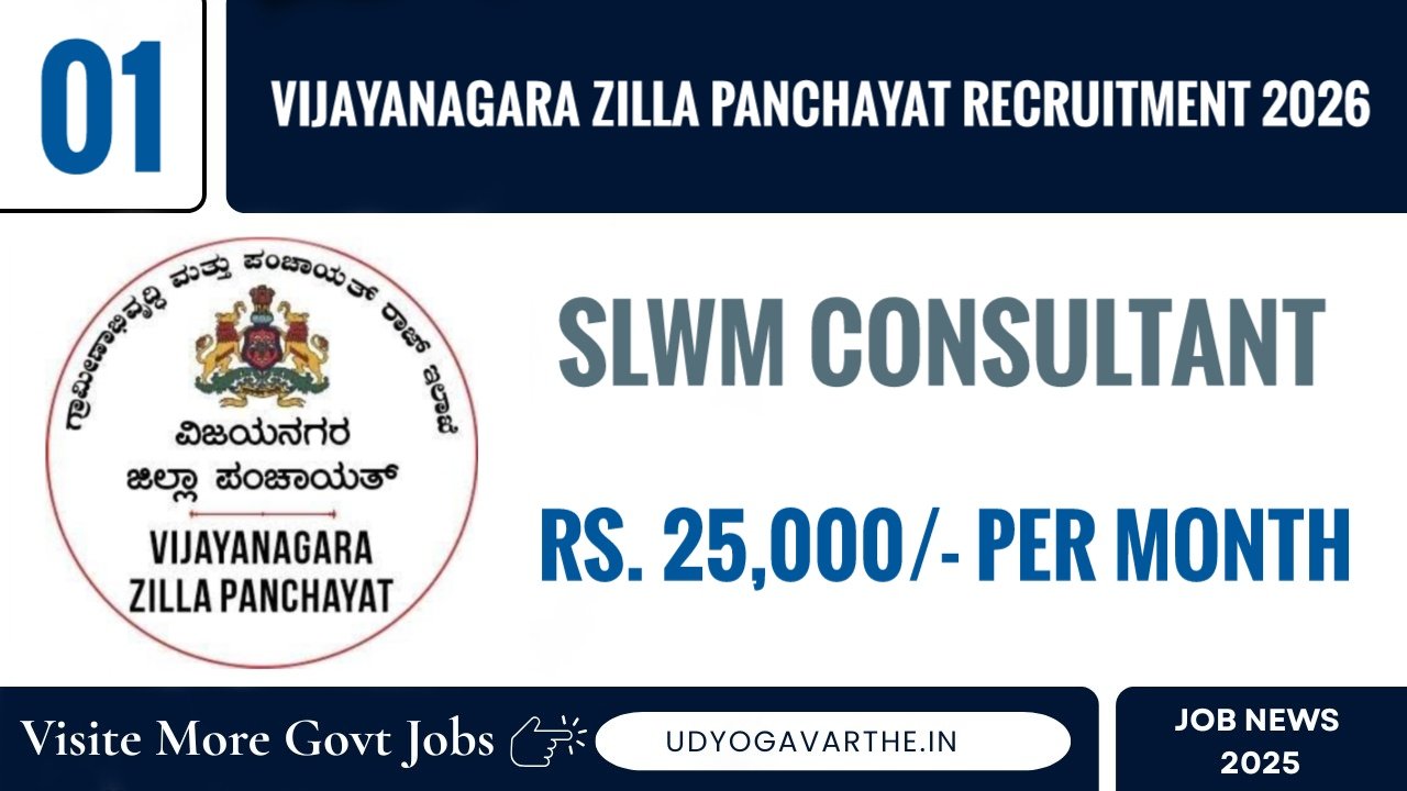 Vijayanagara Zilla Panchayat Recruitment 2026: Vijayanagara Zilla Panchayat has released a notification on its official website to fill 01 SLWM Consultant posts. Those who are interested in joining Vijayanagara Zilla Panchayat and are looking for a government job can apply online before 12 February 2026. Read more information about these posts and download the notification through the link given below.