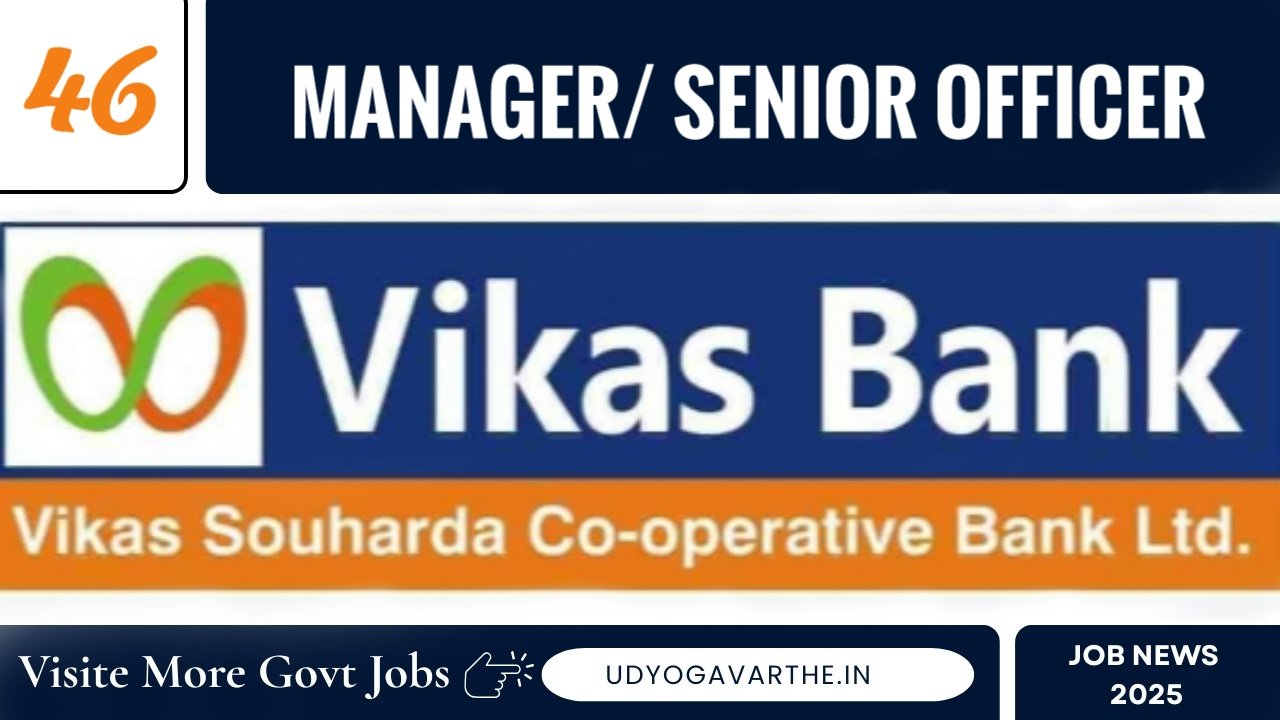 Vikas Souharda Co-operative Bank Ltd Recruitment 2026: vikas Bank has released a notification on its official website to fill 46 Manager/ Senior Officer posts. Those who are interested in joining Yadgiri District Courtand are looking for a government job can apply online before 24 April 2026. Read more information about these posts and download the notification through the link given below.